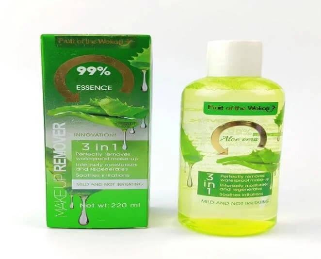 Wokali 99% 99% ESSENCE INNOVATIONI 3 in1 Perfectly removes waterproof make-up Intensely moisturises and regenerates Soothes irritations MILD AND NOT IRRITATING Net wt: 220 ml MAKE UP REMOVER.